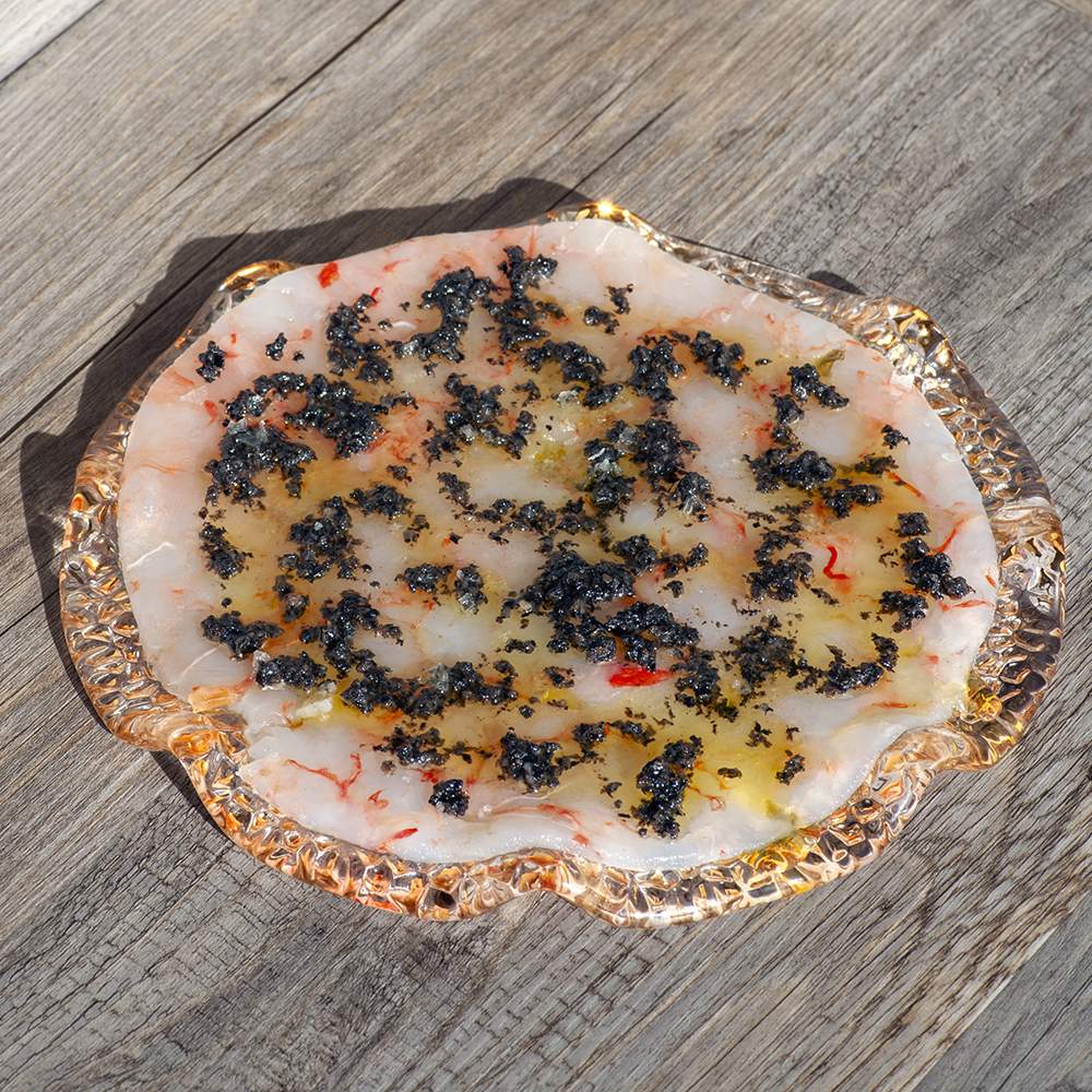 2. Textura suave y delicada: las gambas rojas crudas en forma de carpaccio tienen una textura suave y delicada, lo que permite apreciar plenamente su frescura y jugosidad.